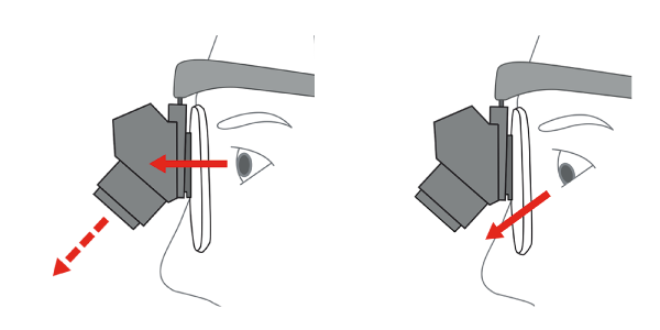首を動かさずに、眼を上下に動かすだけで、拡大視と等倍視*の切り替えが可能。そのため、拡大視野は常に一定に保たれます。