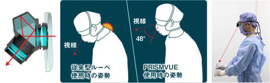 PENTAX独自の偏向プリズム*を採用することにより、前方視の姿勢で術野を拡大視できます。