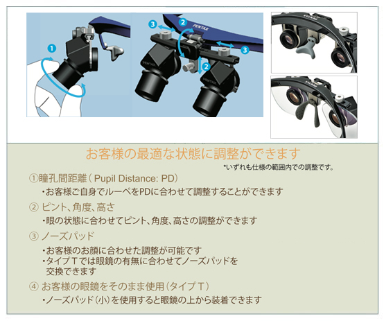 PENTAX 手術用 偏向ルーペ 仕様比較表