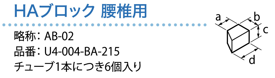 | 品番 | 適用部位 | 気孔率(%) | 定型寸法(mm) | 体積/個(ml) | 包装 |