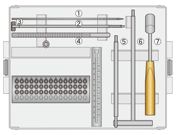 インプラント、工具を手術に必要な器械はすべてひとつのケースに収めました。