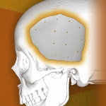 クラニオフィット-PE![]() 超高分子量ポリエチレン製のフルカスタムメイド頭蓋プレートです。衝撃に強く術中・術後の破損リスクが低い軽量型の人工骨です。