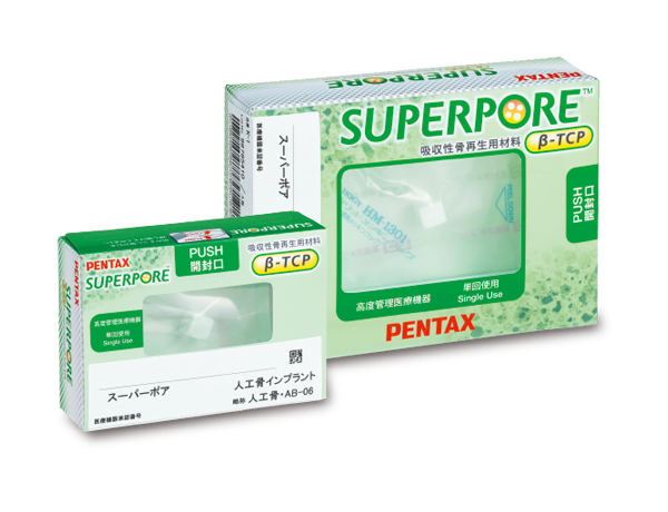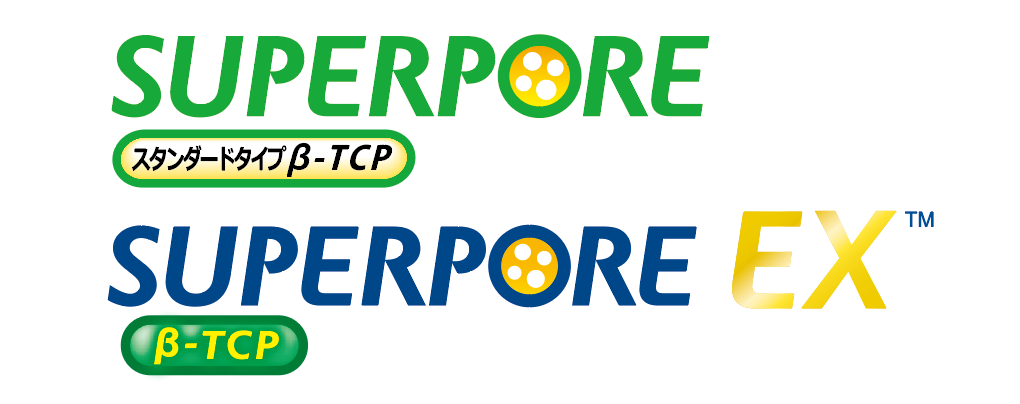 「スーパーポア」は、吸収性のβ型リン酸三カルシウム人工骨です。 材料の吸収・骨組織置換のバランスを両立したスーパーポアスタンダード、高強度をもつβ-TCPからなるスーパーポアEX製品があり、 気孔率・圧縮強度の異なる製品ラインナップにより用途に応じて選択が可能です。
