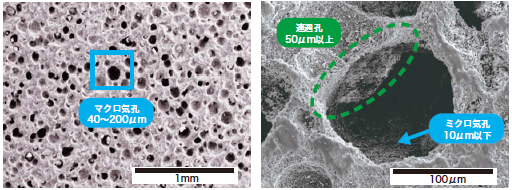 マクロ気孔:50~300μm, 連通孔:50μm以上, ミクロ気孔:10μm以下